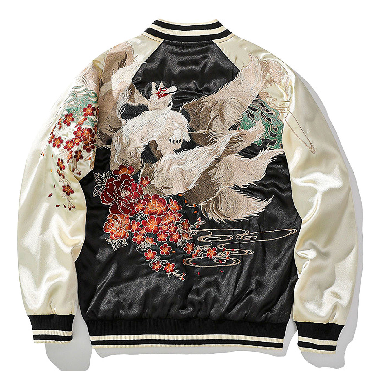 Each piece features detailed embroidery with satin reflections: dragons, tigers, phoenixes, or kitsune. These ancestral motifs, symbols of strength and protection, are crafted with exceptional precision faithful to the Sukajan tradition.